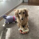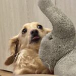 ミニチュアダックスフンドの男の子で、とってものんびり屋の性格。